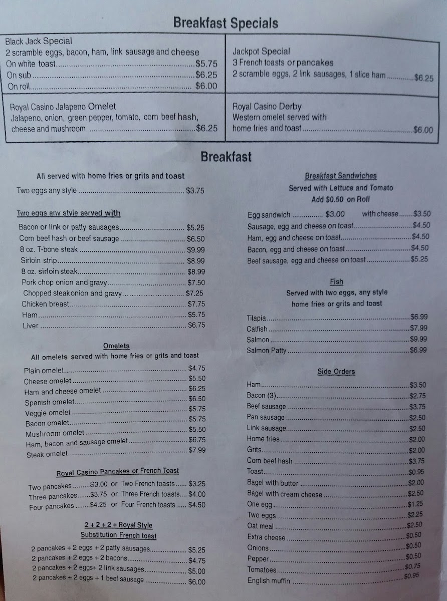 With customer favorites like the Jackpot Special, Georgia sausage, and ham and cheese omelet, Royal Casino stands out for its generous portions and scrumptious flavors. Patrons rave about the speedy service, often highlighting that the food arrives swiftly, allowing you to relish in deliciousness without a long wait. Whether you're indulging in their mix of beverages or savouring their signature jerk sauce, the experience is surely delightful.